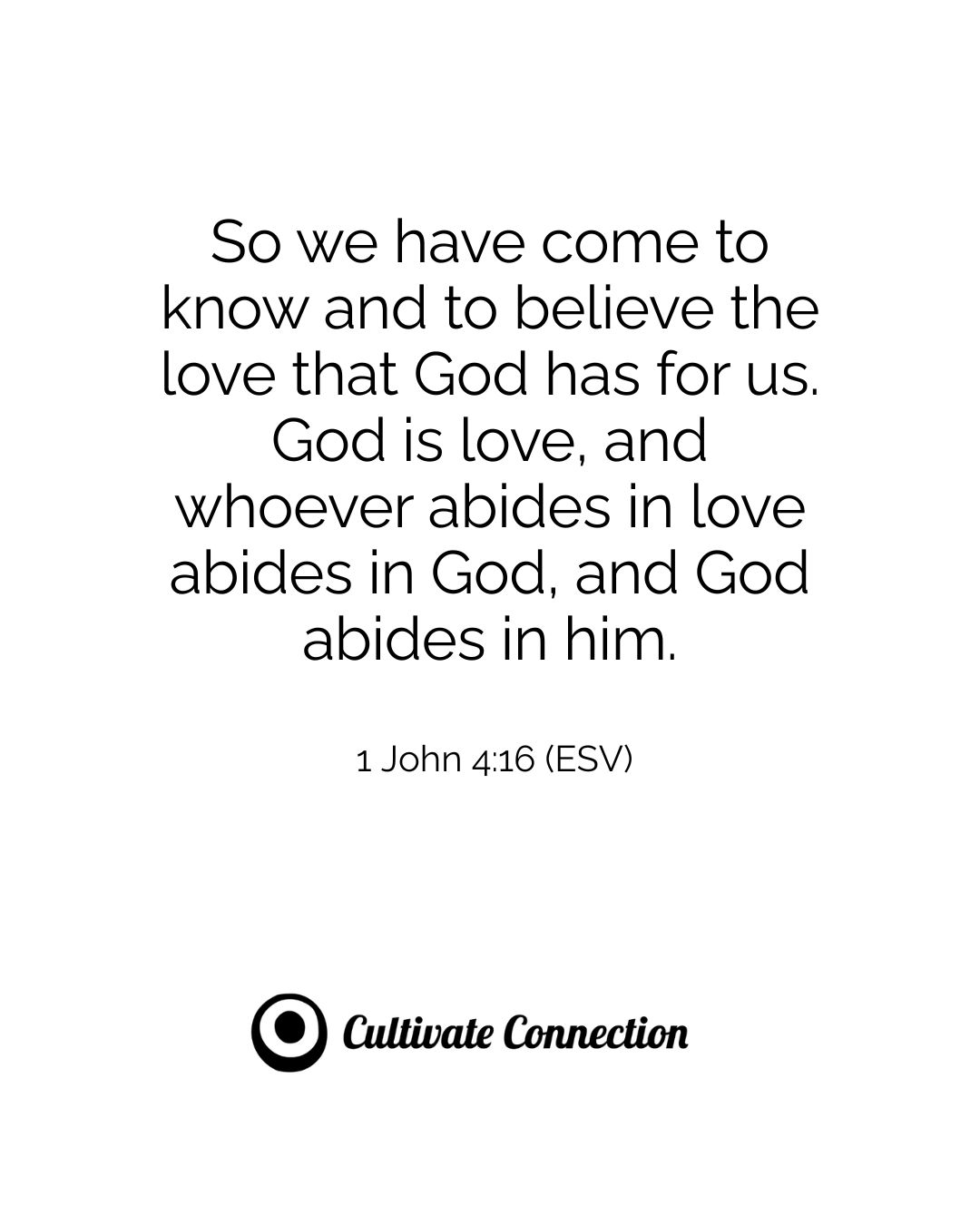 So we have come to know and to believe the love that God has for us. God is love, and whoever abides in love abides in God, and God abides in him.